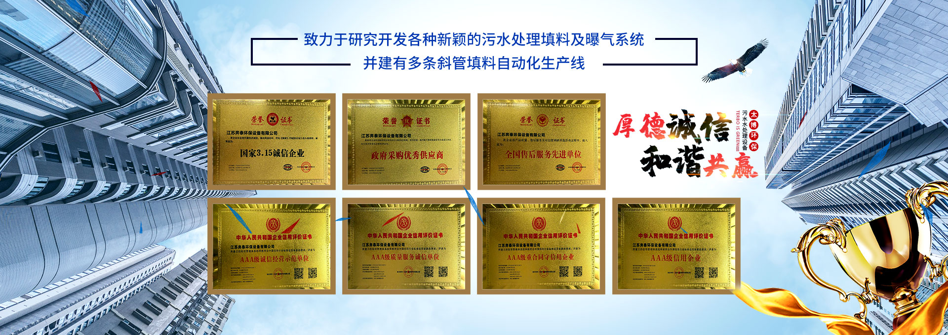 無錫太博環保科技有限公司位于我國聞名的環保之鄉—宜興市高塍鎮,專業生產各種加藥裝置,機械格柵,疊羅污泥脫水機,mbr膜,填料曝氣器等污水水處理設備配件等,已有數十年的歷史。本公司著重致力于研究開發各種新穎的污水處理填料及曝氣系統,并建有多條斜管填料自動化生產線。   多年來,我們視用戶為上帝,以誠信為本,以我們過硬的產品質量為基礎,為各地的環保同行及用戶提供了一批又一批質優價廉的環保配件。...